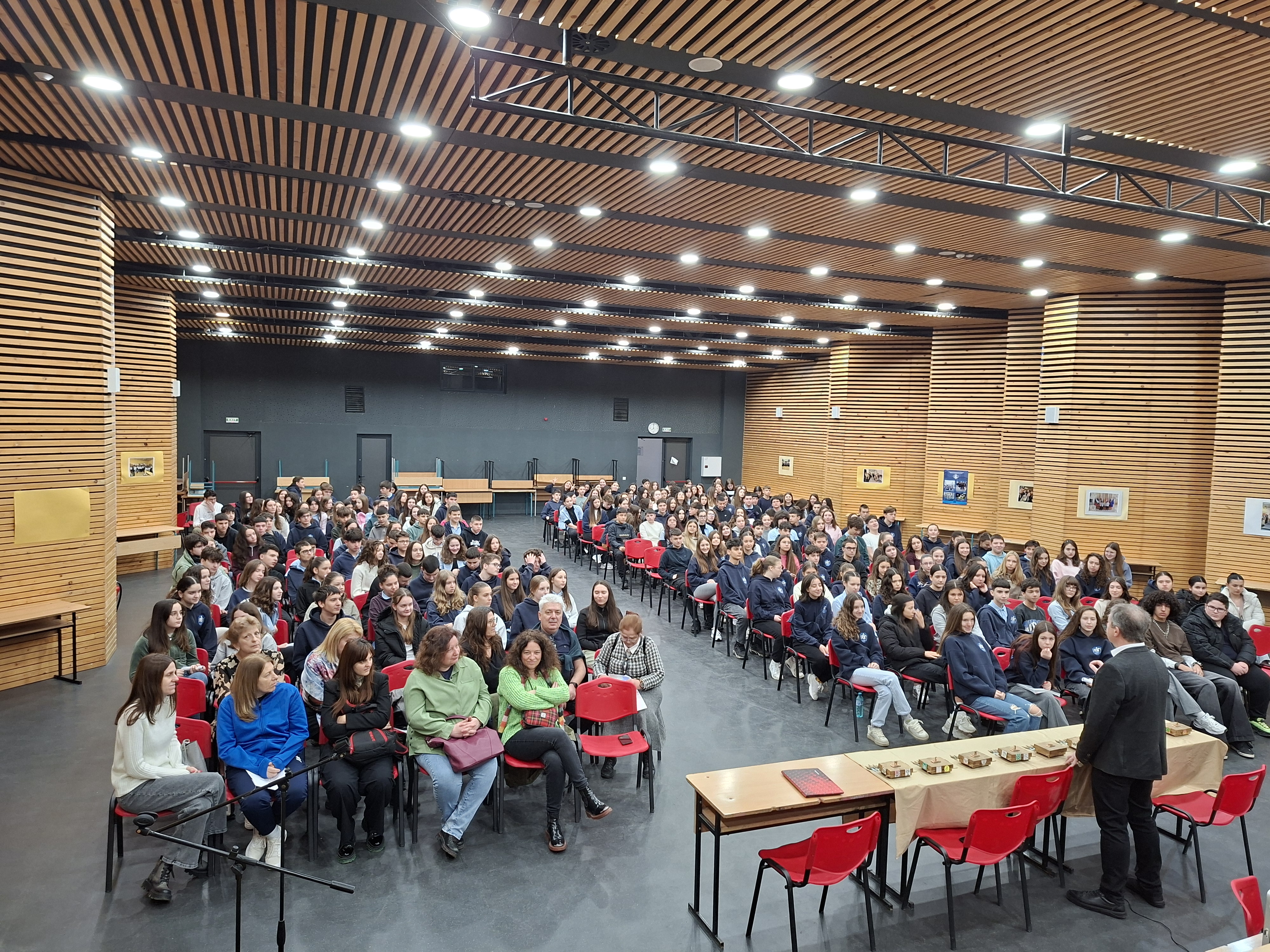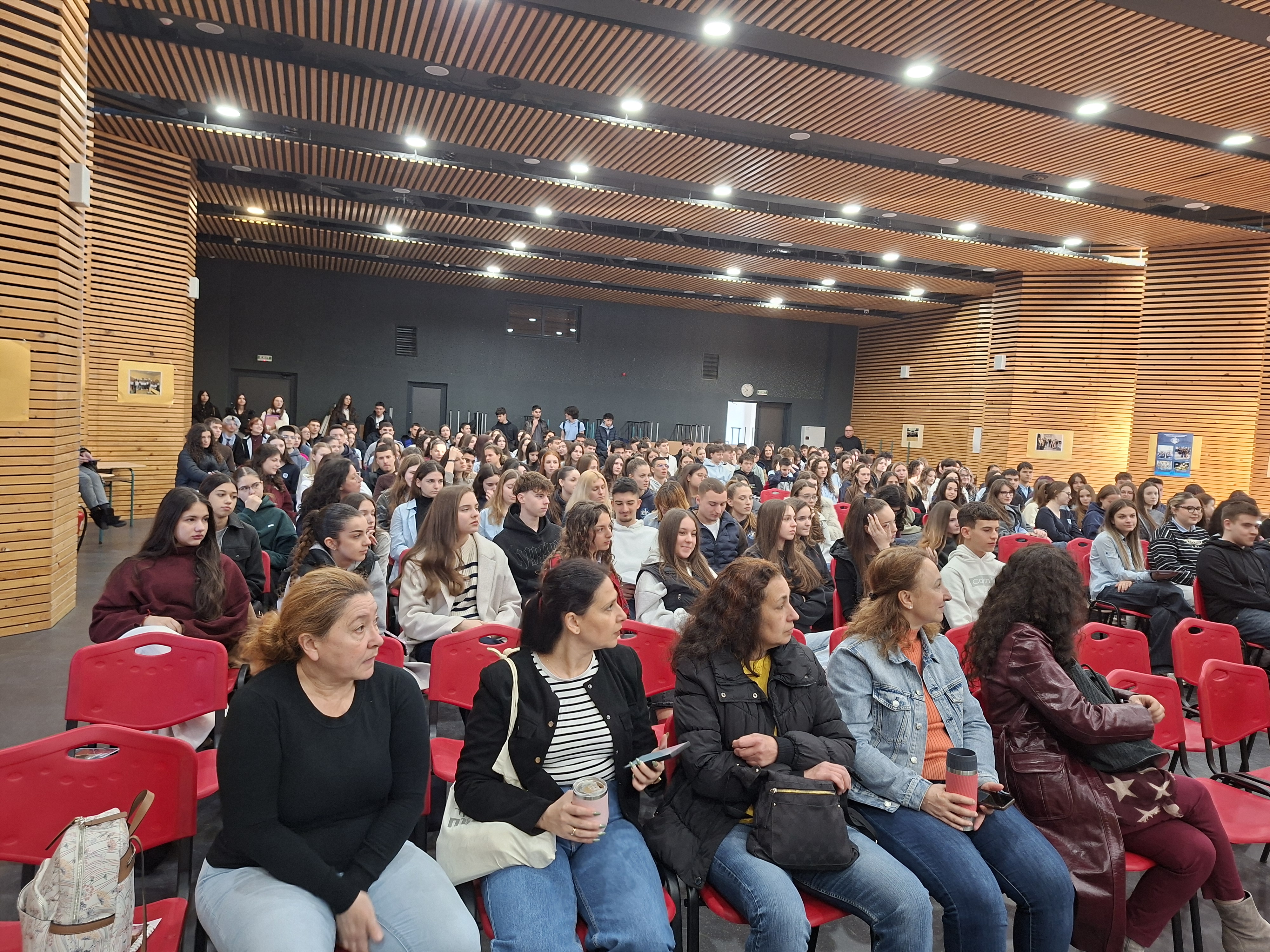 В ранното утро на 20 март актовата зала на гимназията бе изпълнена с ентусиазирани деветокласници и учители, които дадоха началото на проектната седмица за уч. 2022/2023 г. За втора поредна година учениците ще покажат своята креативност, умение за работа в екип и увереност, че могат да пресътворят наученото в учебните часове, като го свържат с представите си за реалния живот. Учениците ще представят и защитят своите идеи за успешни бизнес решения в полза на човека, природата и обществото в края на седмицата.