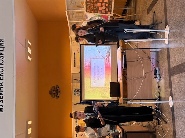 На 4-ти ноемрви Първа езикова гимназия отбеляза Деня на народните будители с традиционнито родолюбиво междучасие, организирано от профил "История" под ръководството на госпожа Нела Димова. Тази година събитието, проведено на втория етаж на гимназията, беше посветено на варненските будители - личности, оставили траен отпечатък върху културното и общественото развитие на морската столица. Ученици и учители изразиха своята признателност и уважение към просветителското дело на тези забележителни българи. Празничната атмосфера беше допълнена от интересна презентация и музикално изпълнение от Стелианна Михнева и София Розберг.