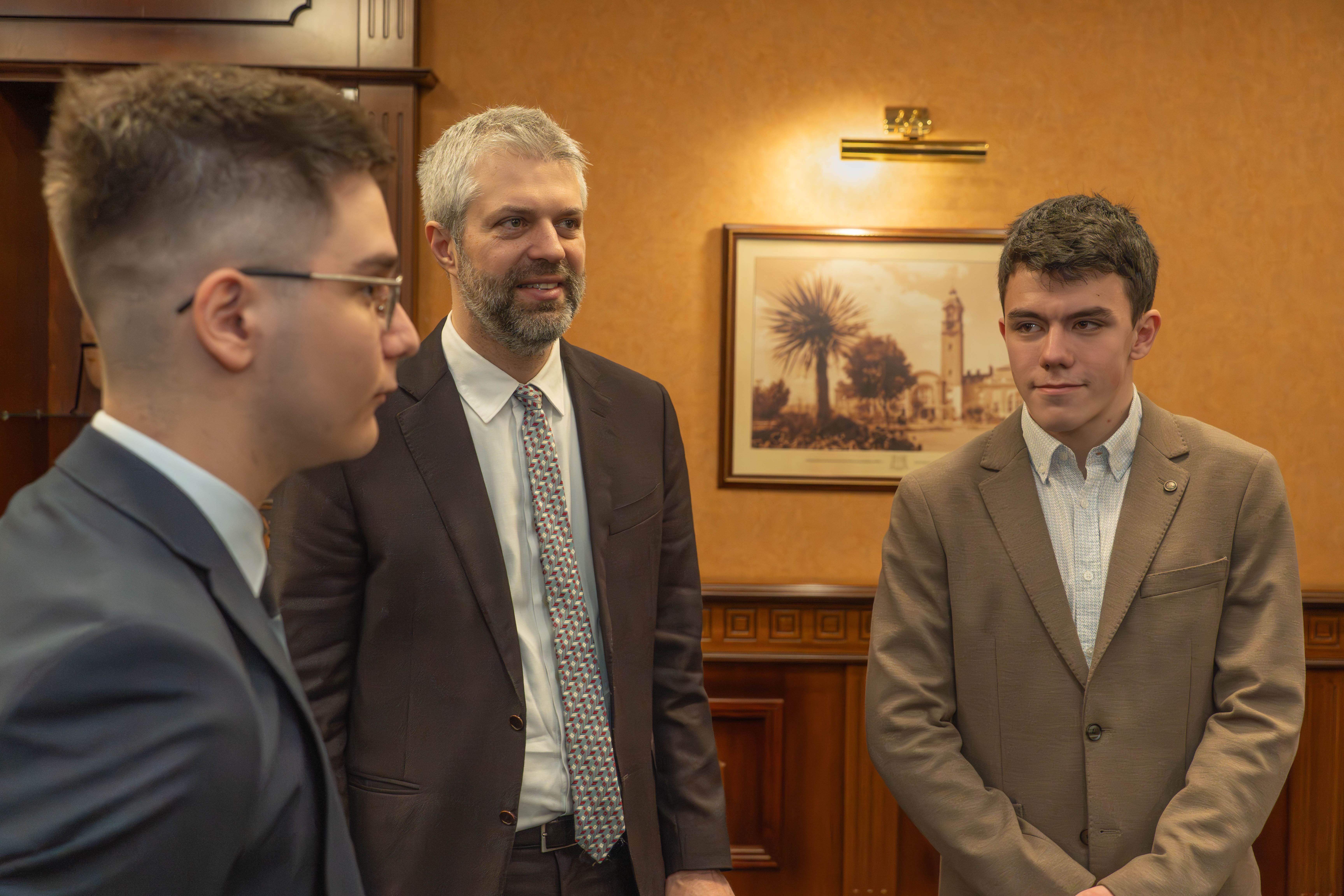 Иновация с мисъл за бъдещето: Борис Стателов - 8.а, Денислав Градев -11.в, които сформираха отбор “SunShade Parking”, като представиха проект за модерни паркинги със соларни панели – решение, което съчетава устойчивост и практичност.