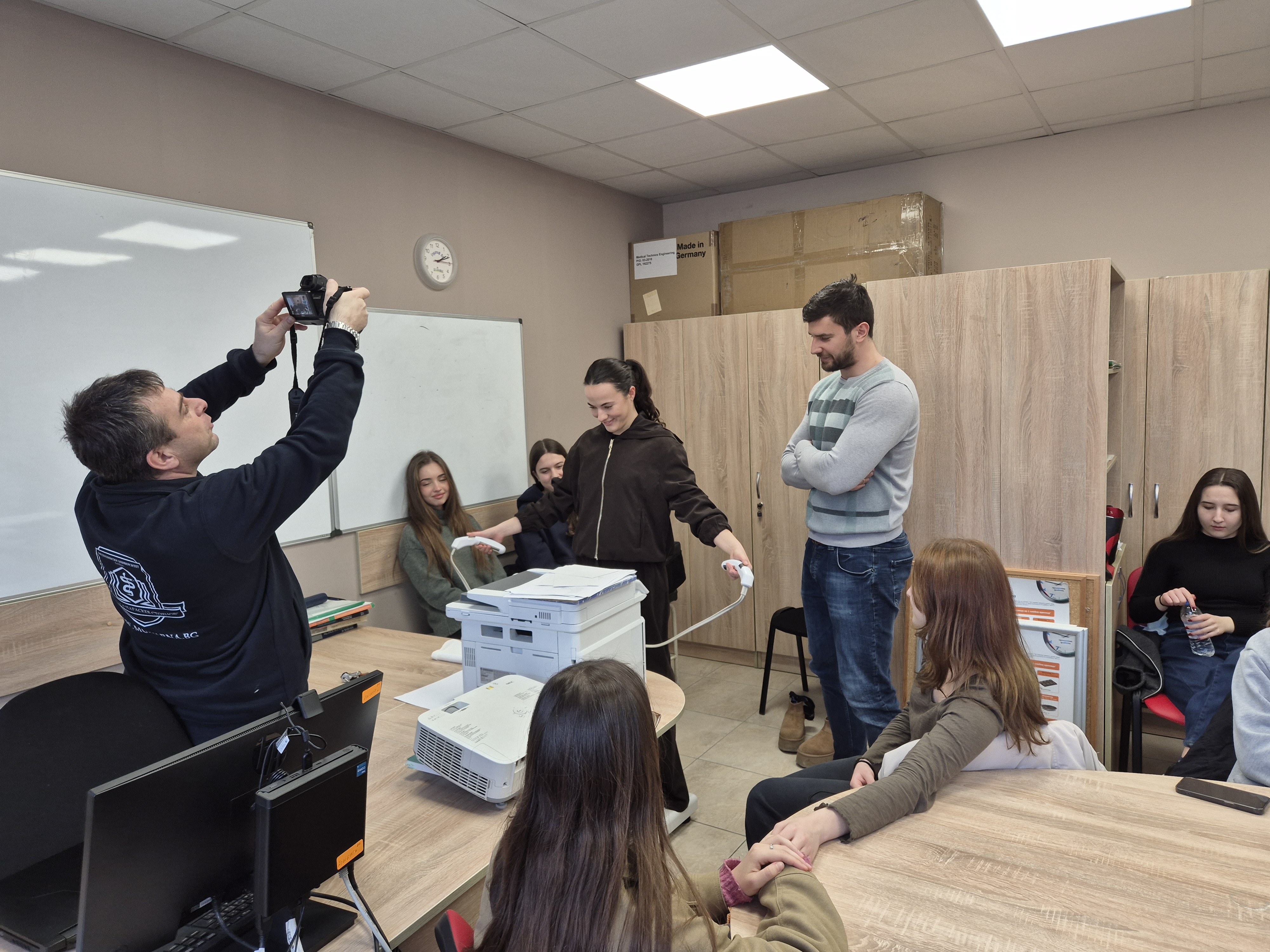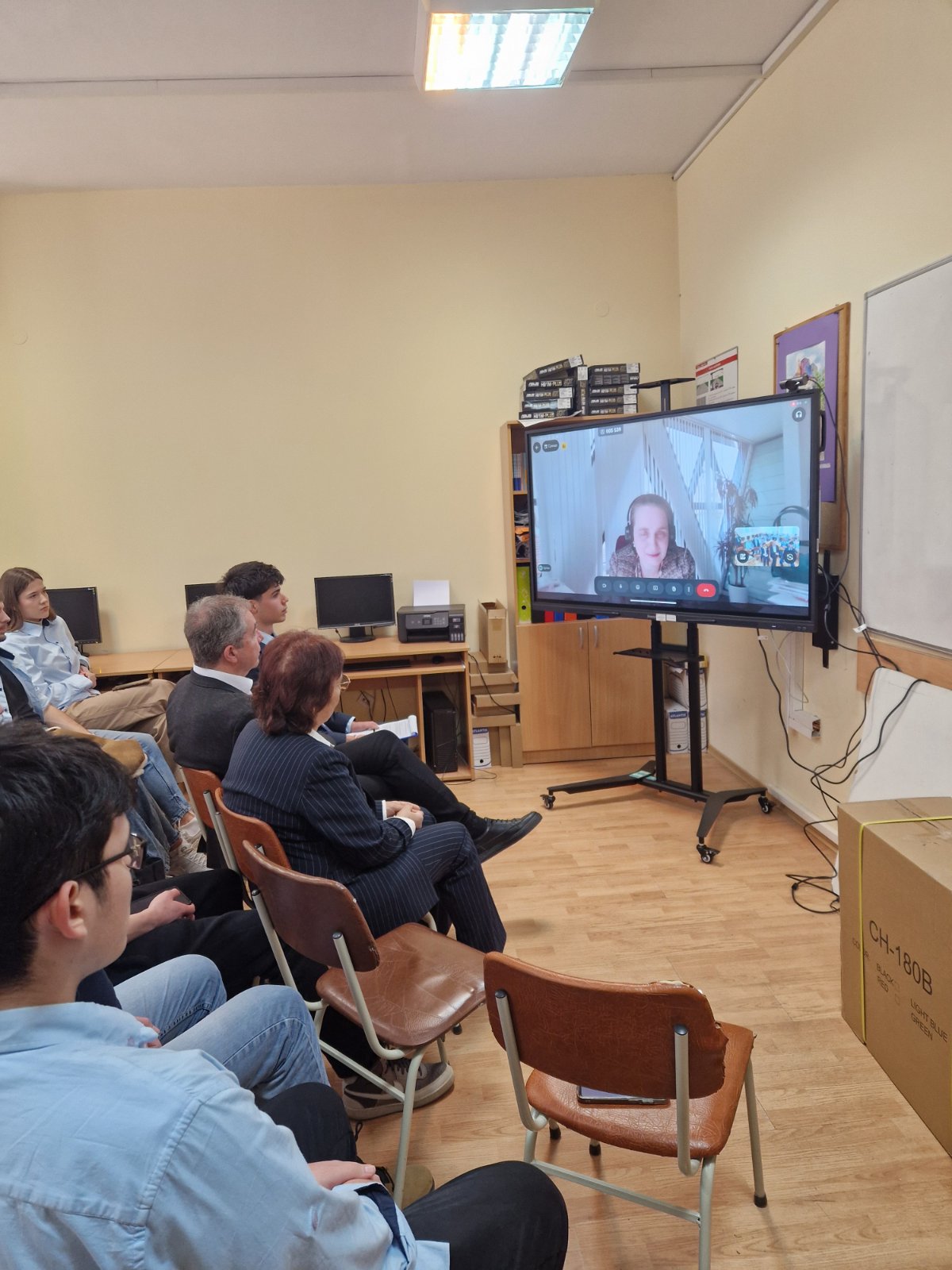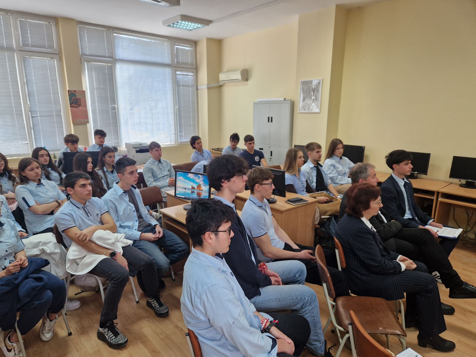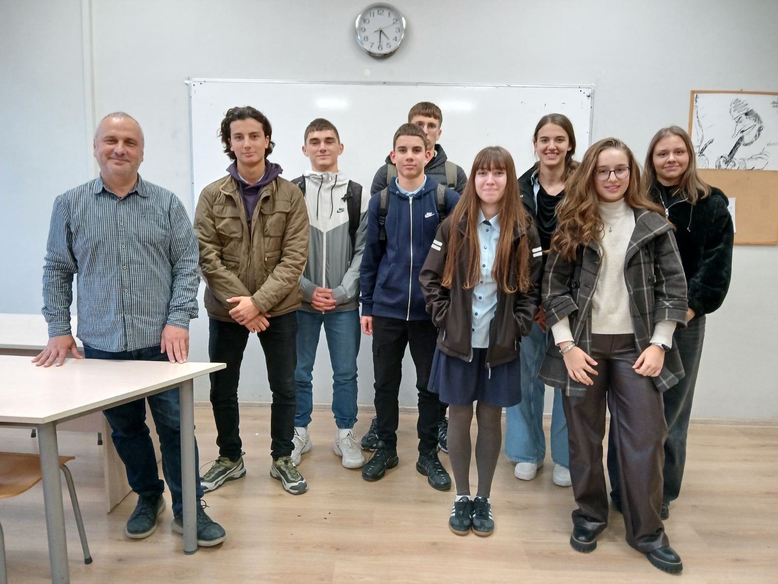 На 12 ноември учениците от клуб „Репортерите на Първа” се срещнаха с бившия възпитаник на гимназията – журналиста Момчил Русев. В ролята си на редактор в английската емисия на БТА „Информация за чужбина“ той сподели спомени от своите ученически години, разказа за професионалния си път и разкри някои от тънкостите на журналистическата работа. Срещата премина като своеобразно интервю, в което учениците имаха възможност да задават въпроси, да почерпят опит и вдъхновение за своите бъдещи проекти. В края на разговора репортерите изразиха своята благодарност за отделеното време и внимание и споделиха надеждата си за бъдещи срещи, на които господин Русев да разкрие още от тайните на журналистическия свят.