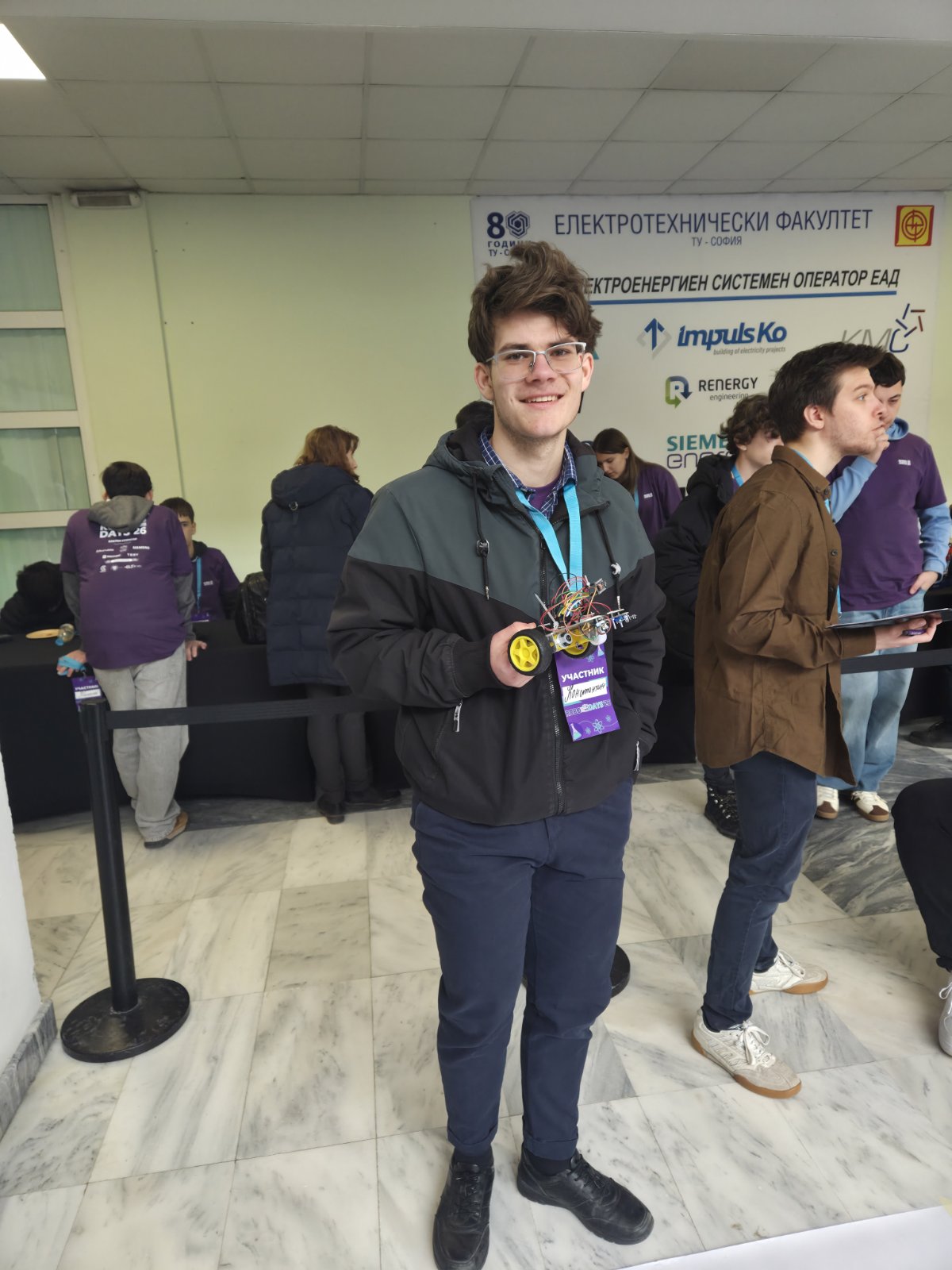 Учениците от клуба по Роботика на Първа езикова гимназия взеха участие в Националното състезание по роботика – Дни на роботиката’26 към ТУ-София, провело се на 20-21 март 2026 година. Дни на Роботиката е традиционна инициатива на клуба по Роботика към Техническия университет - София, която се провежда всяка година с цел да се насърчи и мотивира развитието на роботиката и иновациите в областта на технологиите. Инициативата включва изложение с технологични разработки, работилници и състезания, които са ориентирани към студенти, ученици и хора с интереси в техническите сфери. Константин Пенев и Живомир Христов от 12.д клас участваха в две състезателни групи – следене на линия и рали състезание – управляеми.